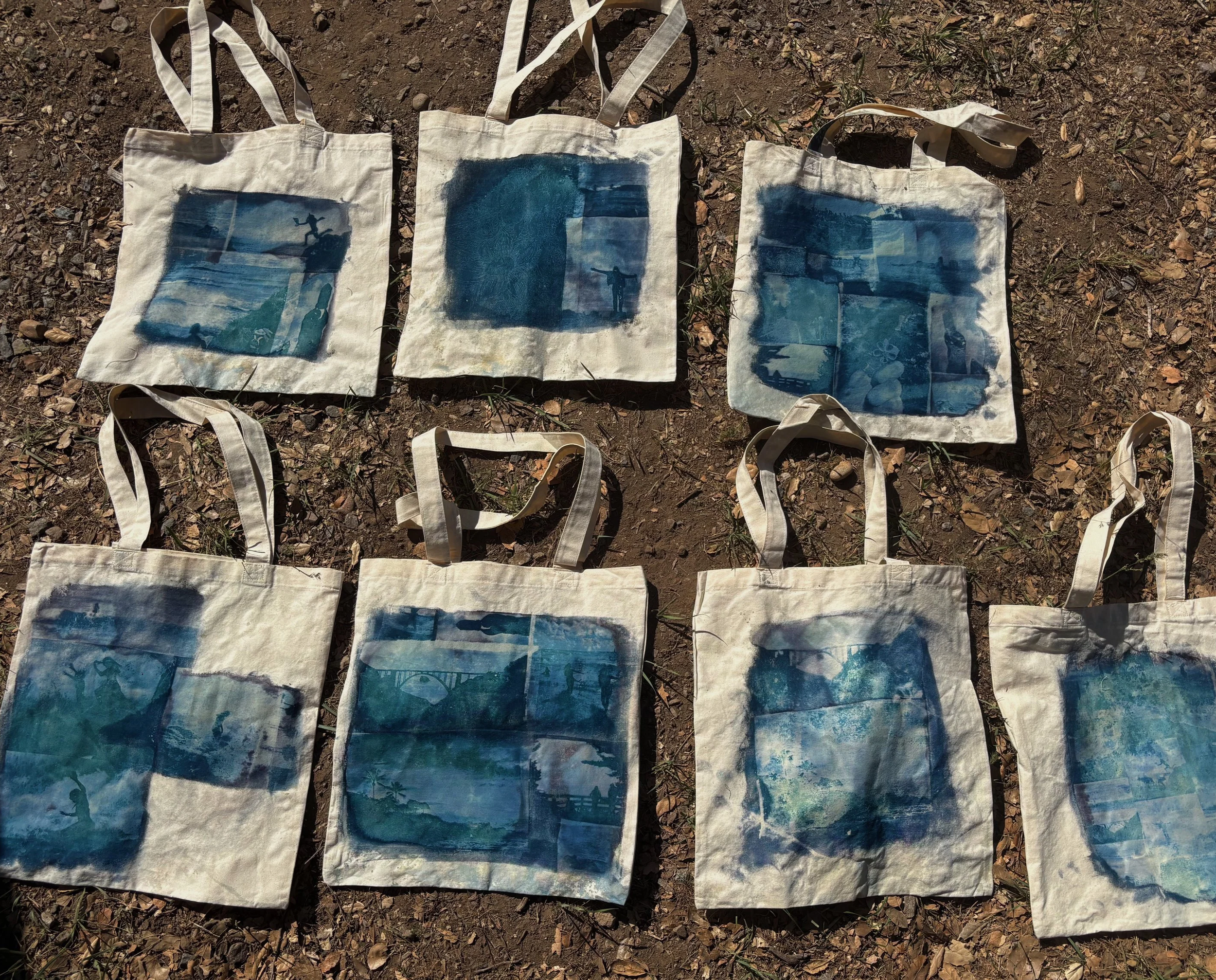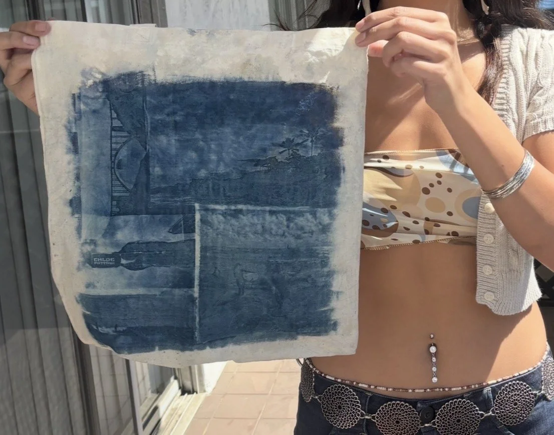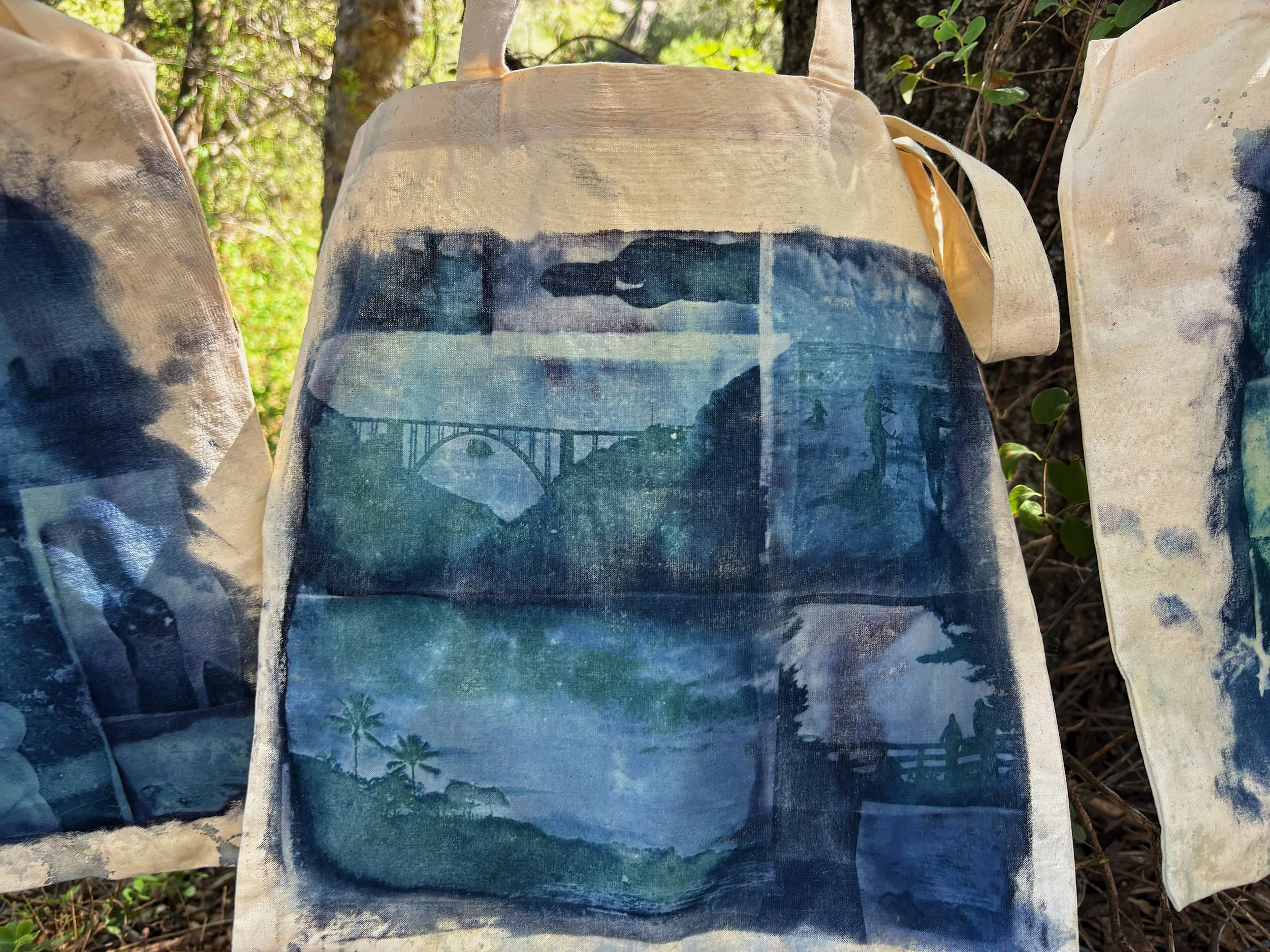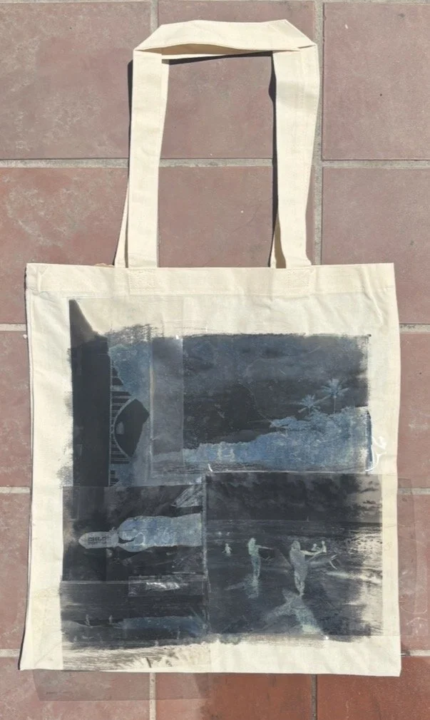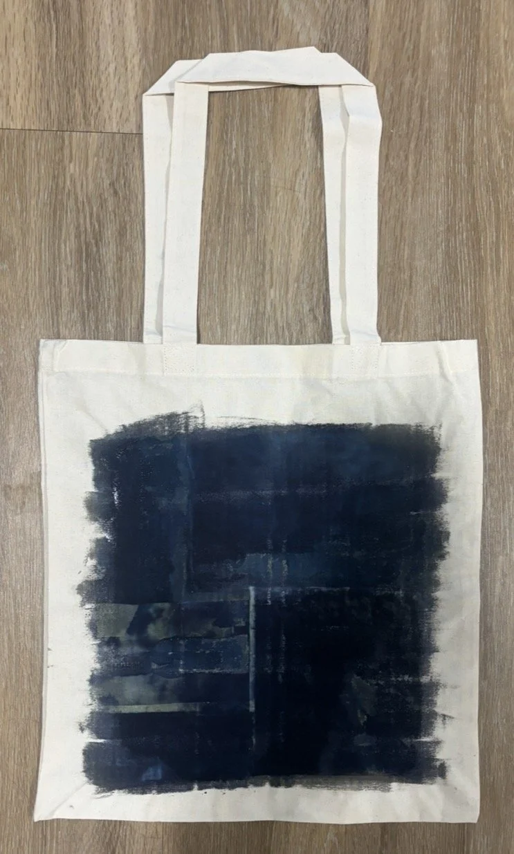 When deciding on what to show as a self-promotion piece at my senior portfolio show, I wanted to choose something that could showcase many aspects of my style and skills as an artist. I decided to create tote bags using cyanotypes, which is one of the early forms of photo printing.