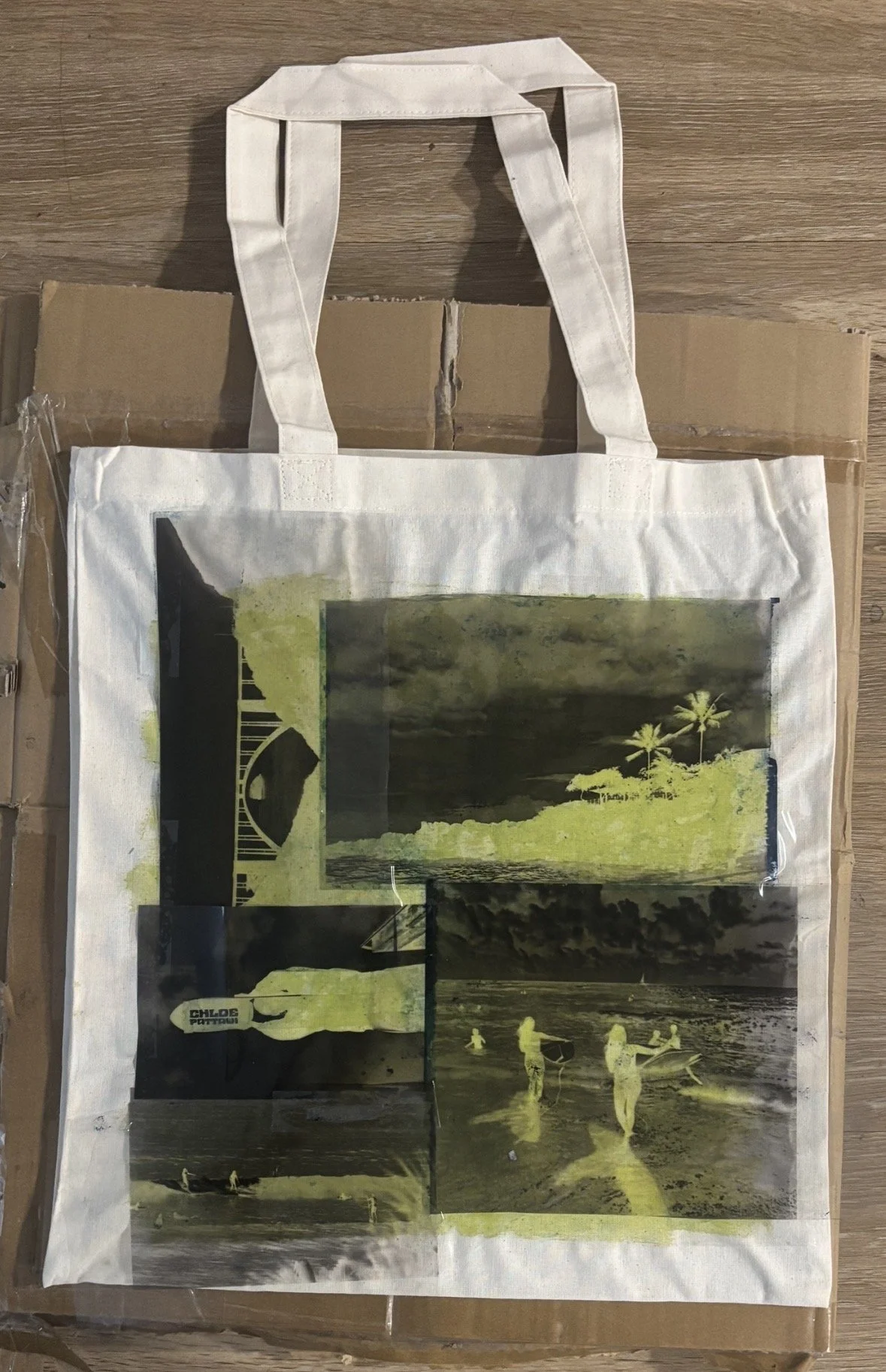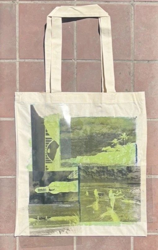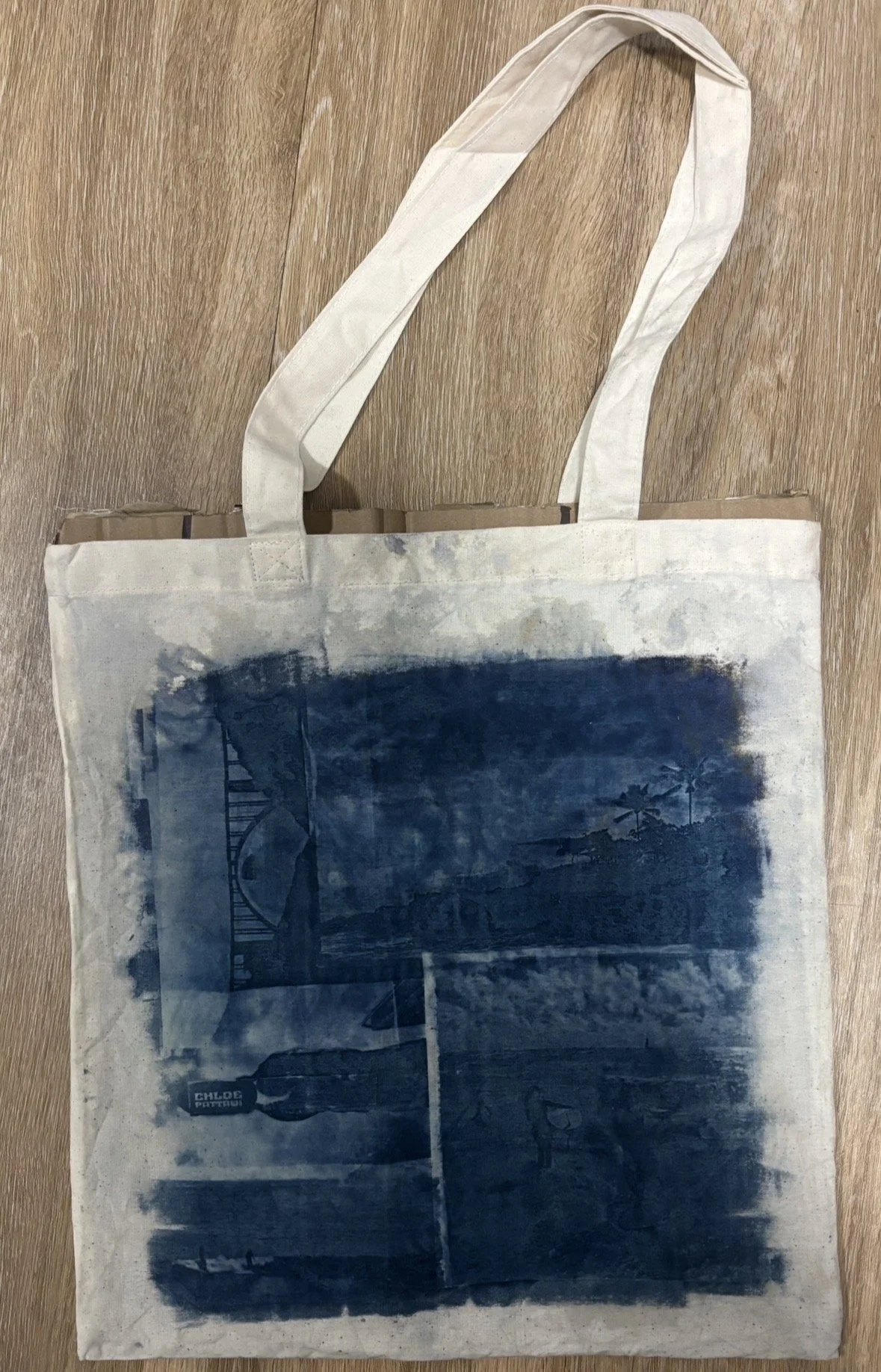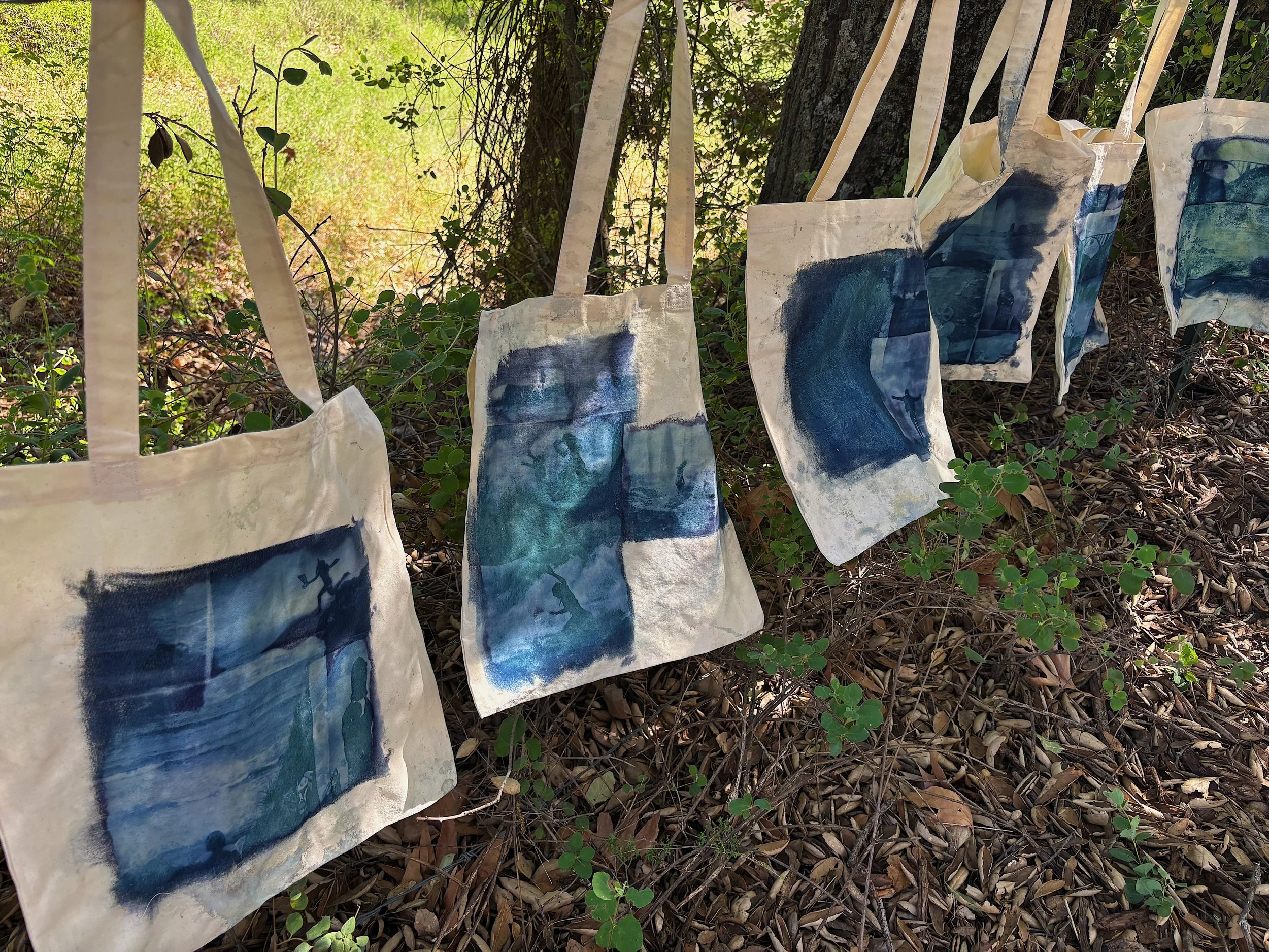 When deciding on what to show as a self-promotion piece at my senior portfolio show, I wanted to choose something that could showcase many aspects of my style and skills as an artist. I decided to create tote bags using cyanotypes, which is one of the early forms of photo printing.